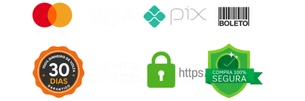 Totalmente seguro. A compra é feita por uma plataforma confiável (CARTPANDA), com todos os dados protegidos. Assim que o pagamento é aprovado, você recebe o acesso imediato por e-mail, com suporte se precisar de ajuda.